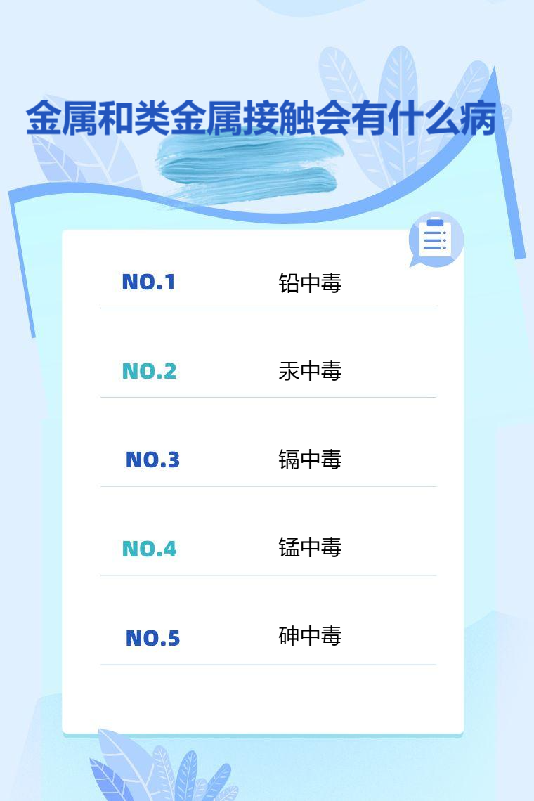 金属和类金属接触可能引发的疾病有铅中毒、汞中毒、镉中毒、锰中毒、砷中毒等。