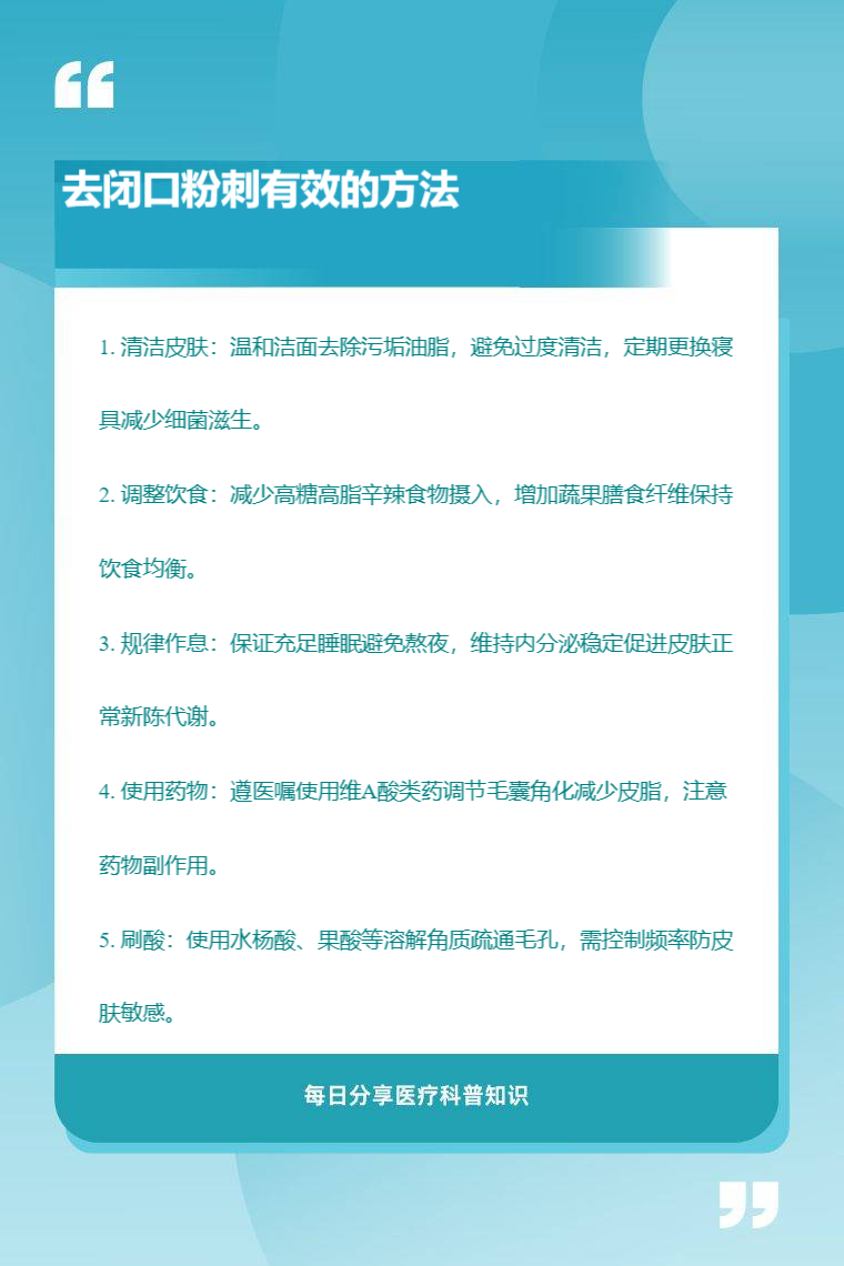 清洁皮肤、调整饮食、规律作息、使用药物、刷酸等是去闭口粉刺有效的方法。