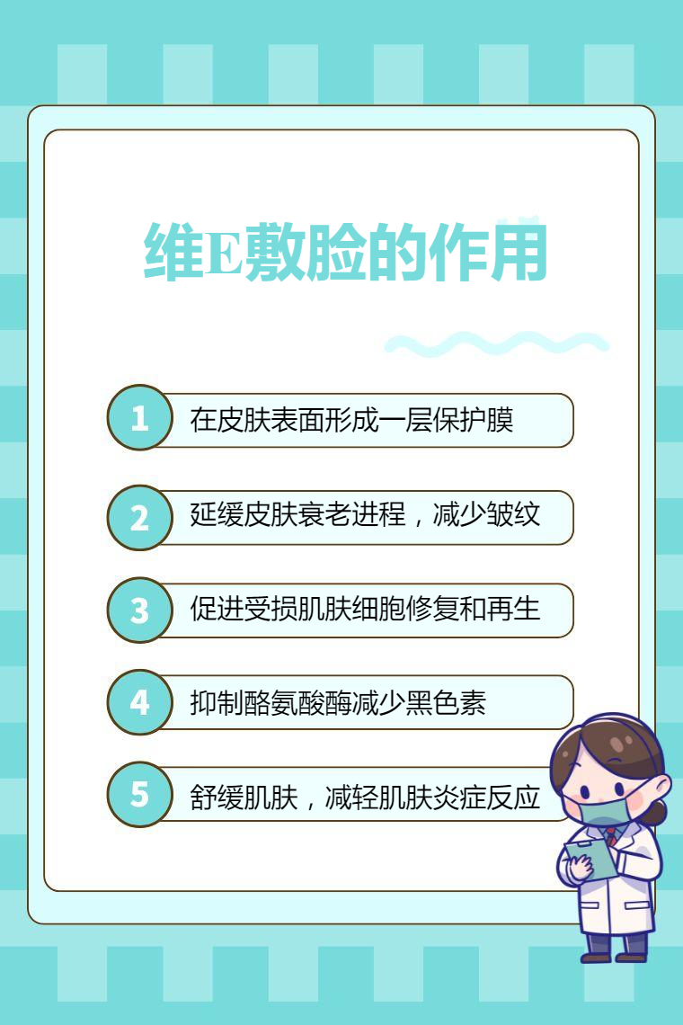 维E敷脸具有保湿、抗氧化、修复肌肤屏障、淡化色斑、缓解炎症等作用。