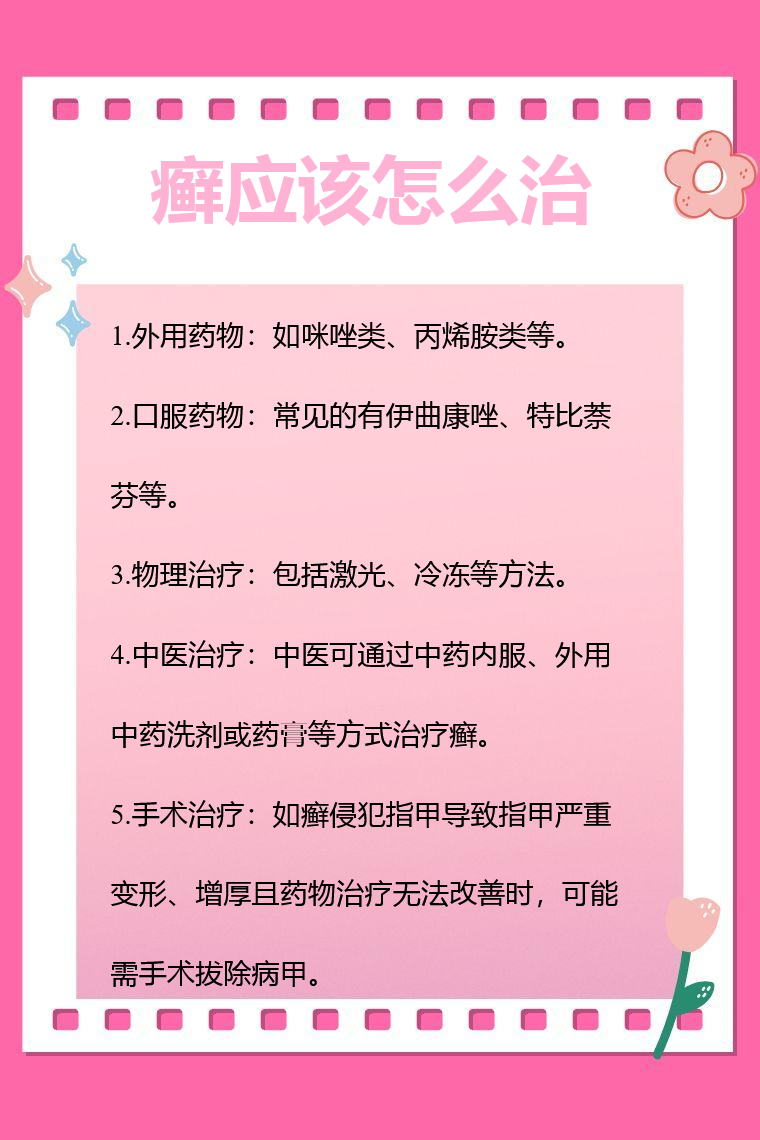 癣的治疗方法有外用药物、口服药物、物理治疗、中医治疗、手术治疗等。