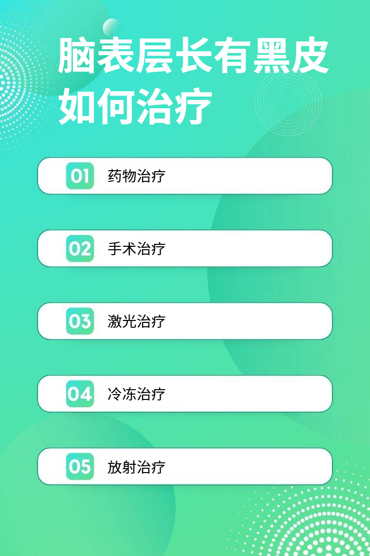 脑表层长有黑皮的治疗方式有药物治疗、手术治疗、激光治疗、冷冻治疗、放射治疗等。