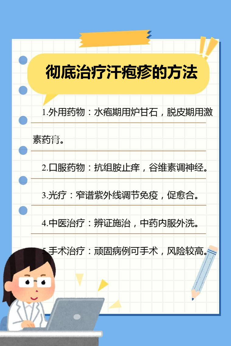 治疗汗疱疹的方法有外用药物、口服药物、光疗、中医治疗、手术治疗等。