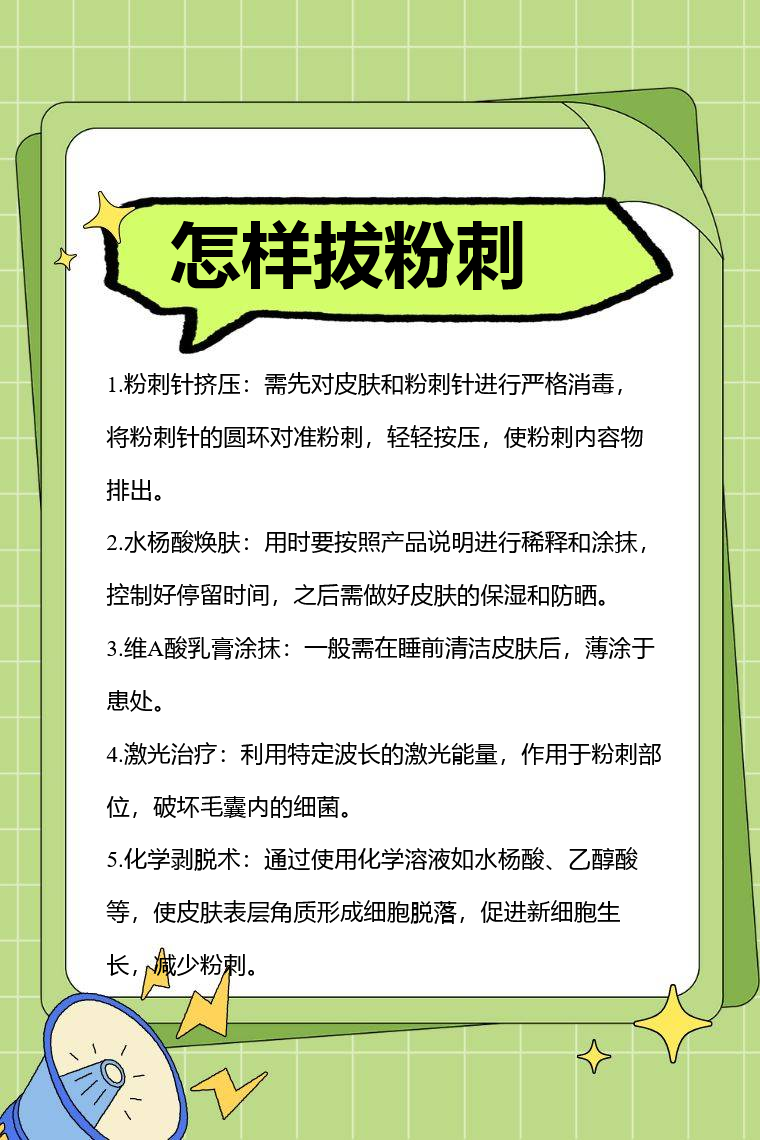 拔粉刺的方法有粉刺针挤压、水杨酸焕肤、维A酸乳膏涂抹、激光治疗、化学剥脱术等。