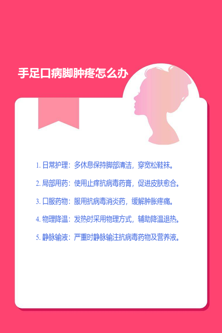 手足口病脚肿疼可通过日常护理、局部用药、口服药物、物理降温、静脉输液等方法缓解。