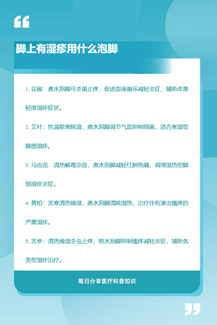 花椒、艾叶、马齿苋、黄柏、苦参等可用于脚上有湿疹时泡脚。