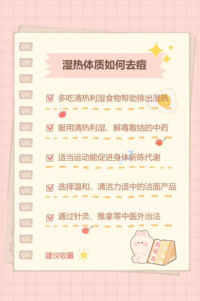 饮食调理、中药调理、运动锻炼、皮肤清洁、针灸推拿等是湿热体质去痘的常见方法。