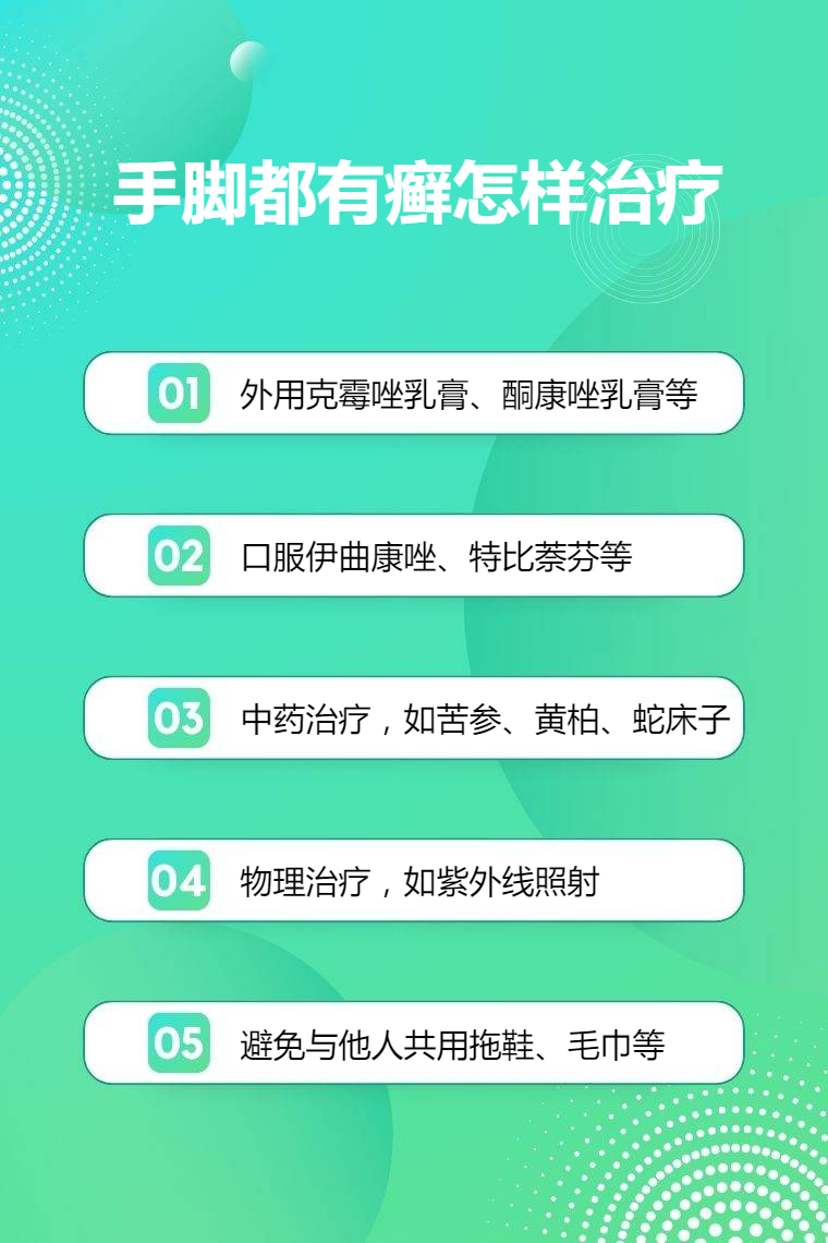 治疗手脚癣需综合多种方法,根据病情严重程度选择合适方式。治疗过程中要严格遵医嘱,坚持用药和护理,才能有效治愈并防止复发。