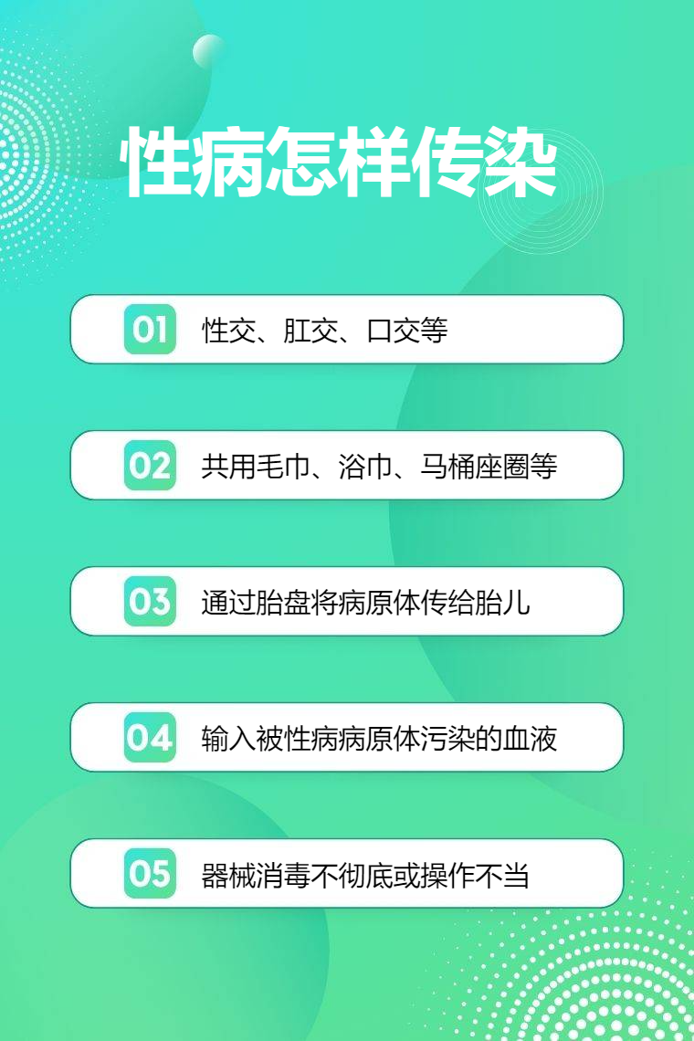 3. 母婴传播:患有性病的孕妇可通过胎盘将病原体传给胎儿,分娩时胎儿经过产道也会接触到含有病原体的分泌物而感染,产后还可能通过哺乳传播。