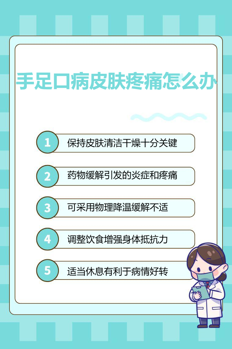 5. 适当休息:保证充足睡眠和适当休息对手足口病恢复很重要。身体在休息时能更好地进行自我修复,增强免疫力,有助于缓解皮肤疼痛。创造安静舒适的休息环境,让身体得到充分放松,利于病情好转。