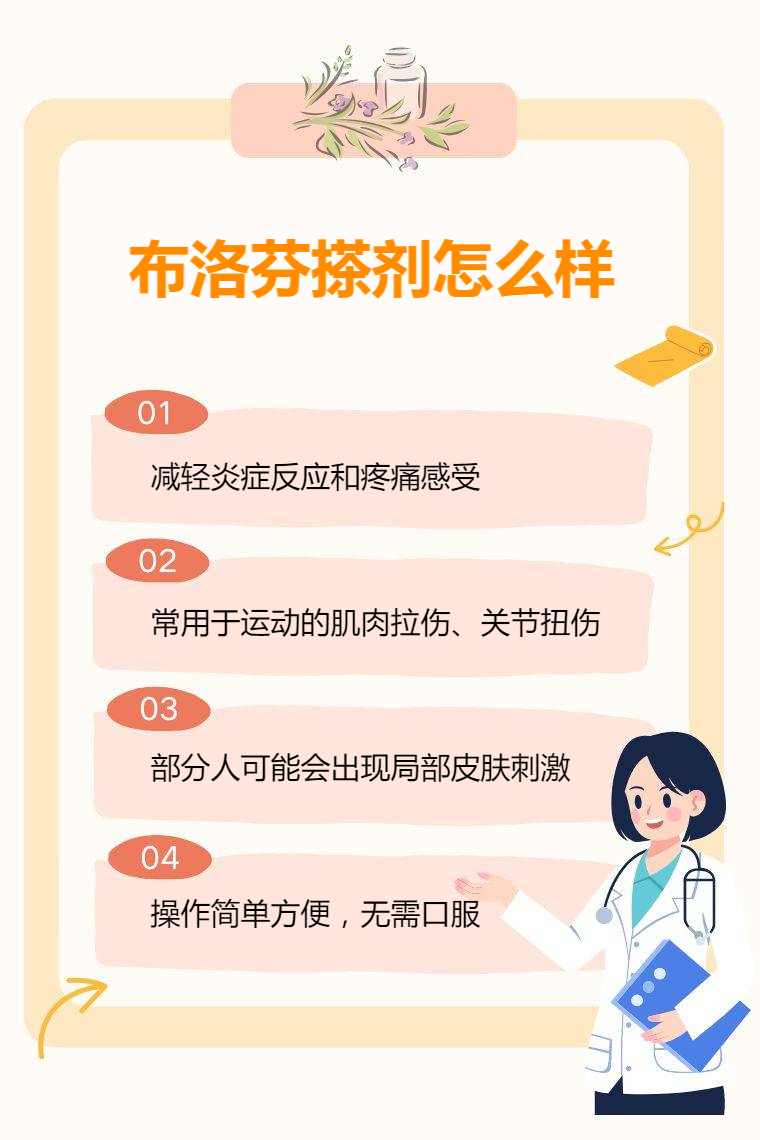 布洛芬搽剂在止痛、抗炎等方面有一定表现,适用于多种疼痛情况、不良反应相对较少、使用方法便捷等。