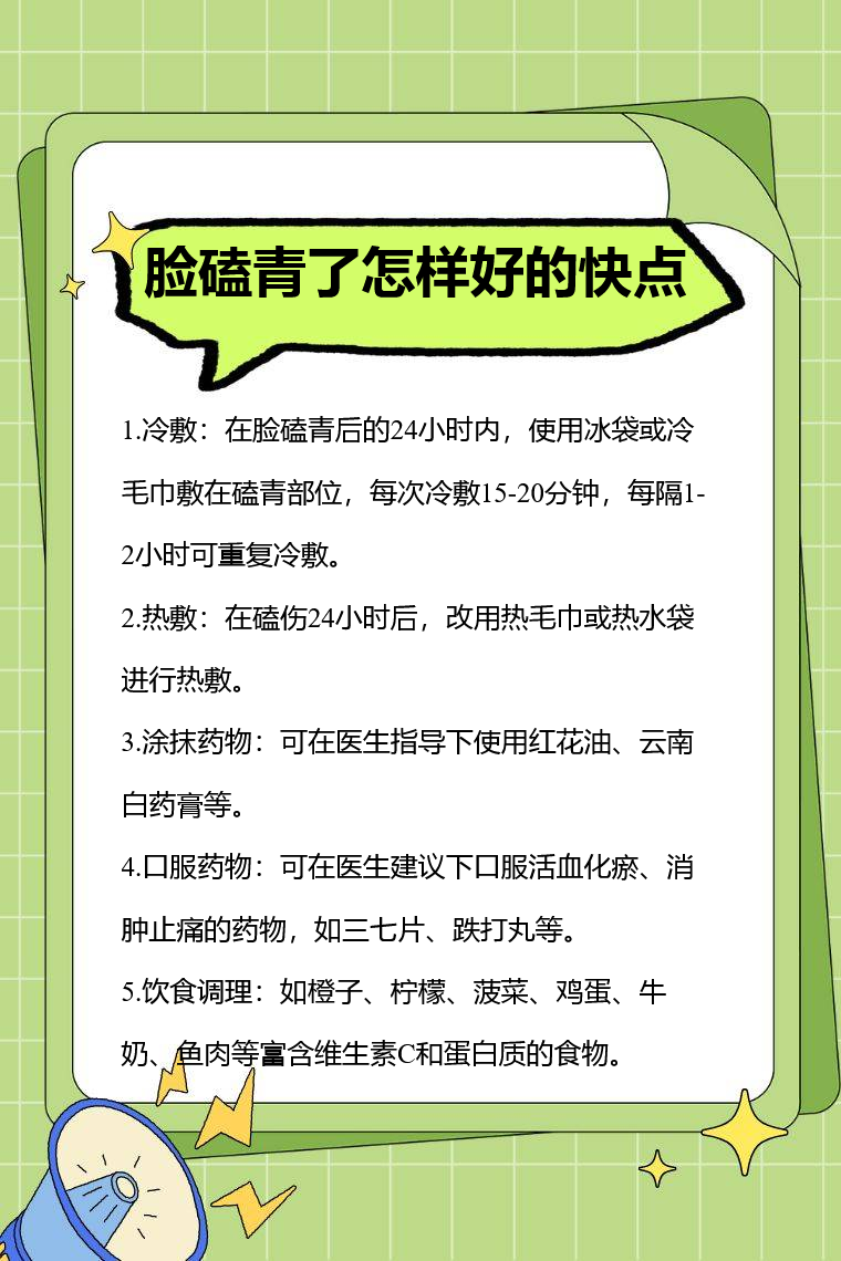 脸磕青了可通过冷敷、热敷、涂抹药物、口服药物、饮食调理等方法好的快点。
