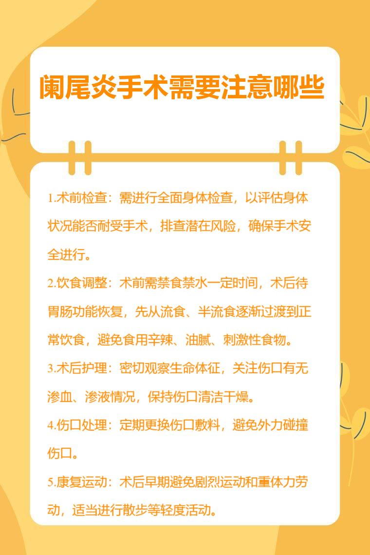 阑尾炎手术患者需要注意术前检查、饮食调整、术后护理、伤口处理、康复运动等。
