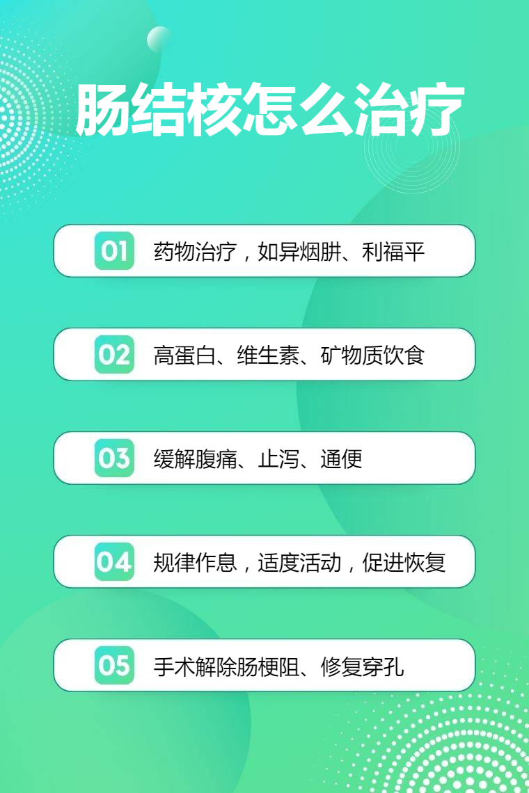 4. 休息与康复治疗:充足休息可减少机体消耗,使身体各器官得到恢复,增强免疫力。患者应保证规律作息,避免劳累,适度进行康复活动如散步等,促进血液循环和新陈代谢,改善肠道功能,为身体对抗肠结核创造良好内部环境,辅助病情康复。
