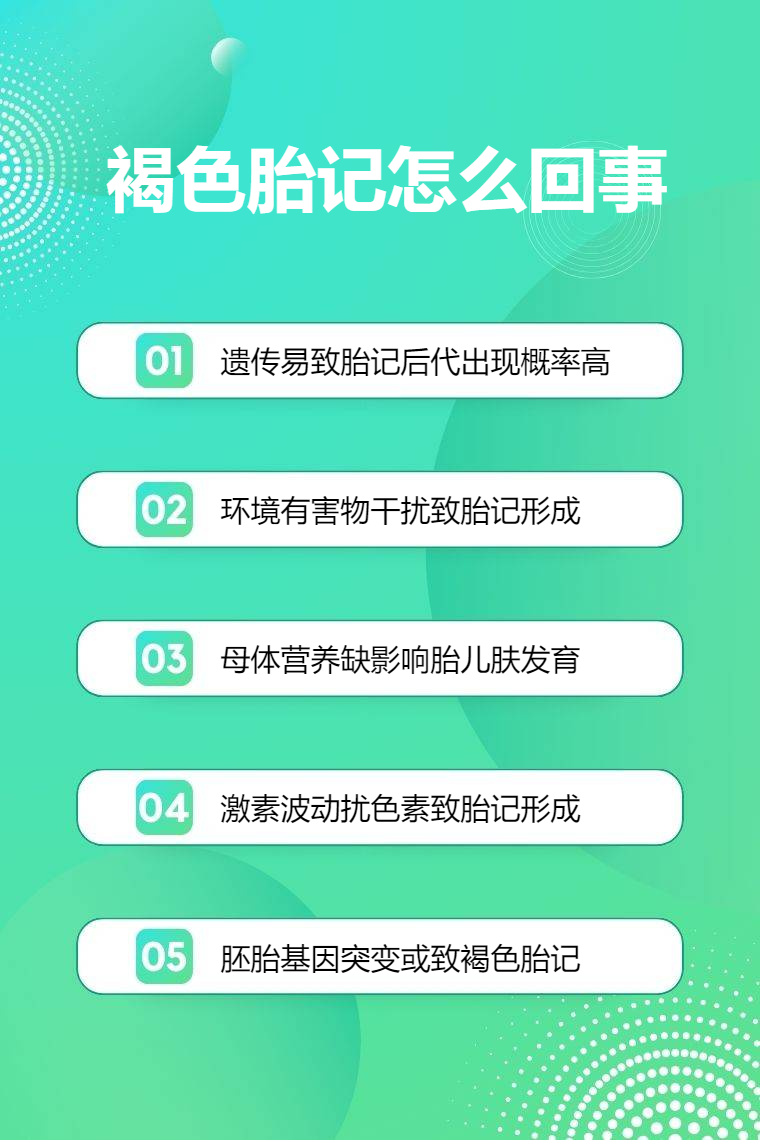 1. 遗传因素:褐色胎记的形成可能与遗传有密切关系,若家族中有褐色胎记出现的病史,后代出现褐色胎记的概率会相对较高,遗传基因在一定程度上决定了胎记的发生,可能通过特定的遗传方式传递,使得某些个体从先辈那里继承了易出现褐色胎记的特质。