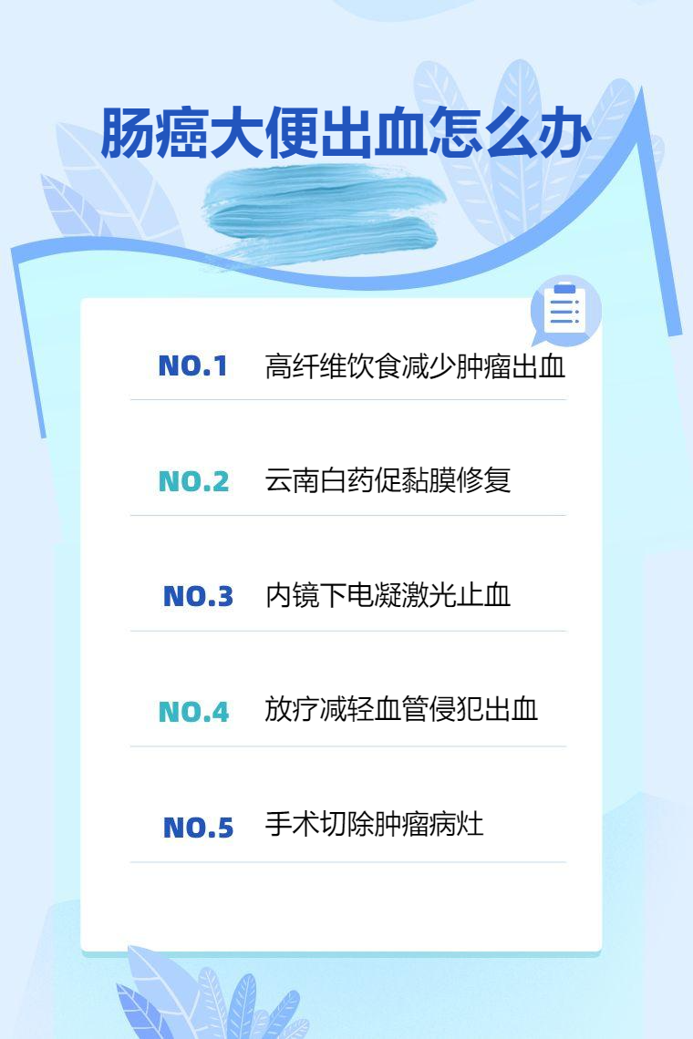 2. 药物治疗:遵医嘱使用云南白药胶囊、凝血酶冻干粉、康复新液。云南白药胶囊具有化瘀止血、活血止痛、解毒消肿的功效,能有效促进肠道局部止血;凝血酶冻干粉可促使纤维蛋白原转化为纤维蛋白,加速血液凝固,从而达到止血目的;康复新液能通利血脉、养阴生肌,促进肠道黏膜修复,减少因肿瘤侵犯导致的出血,对肠癌大便出血起到一定的治疗作用。