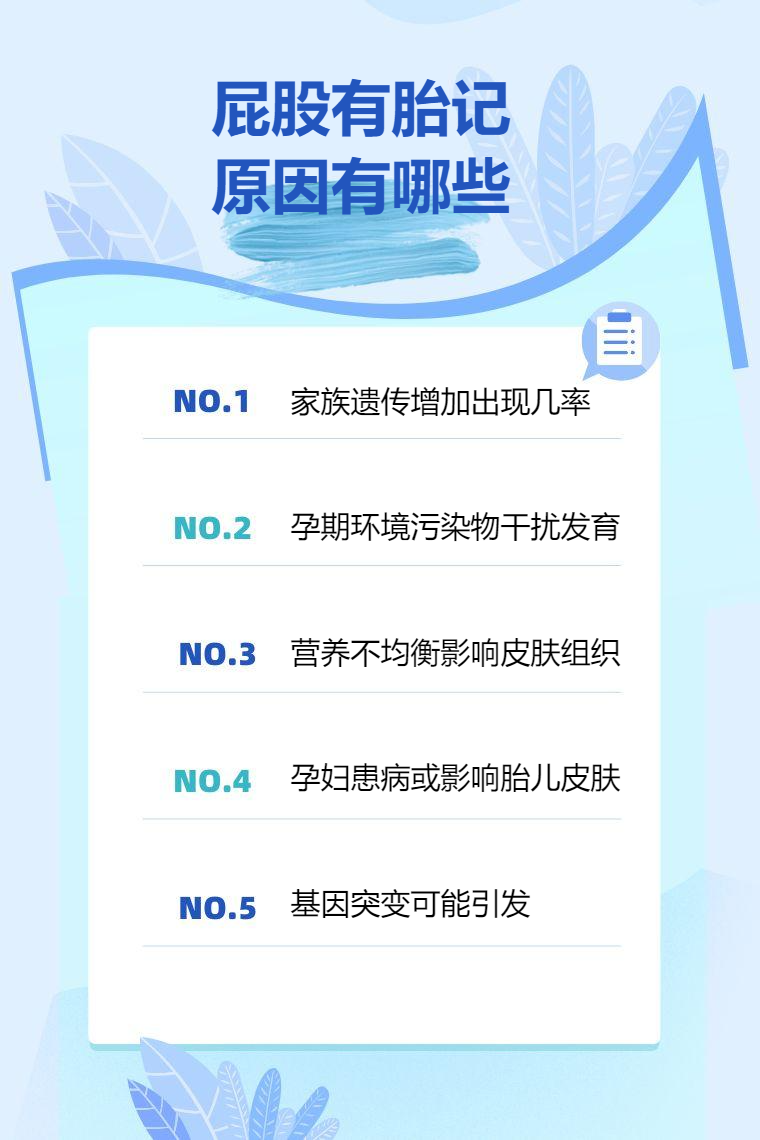 屁股有胎记的原因有遗传因素、环境因素、营养缺乏、孕期疾病、基因突变等。