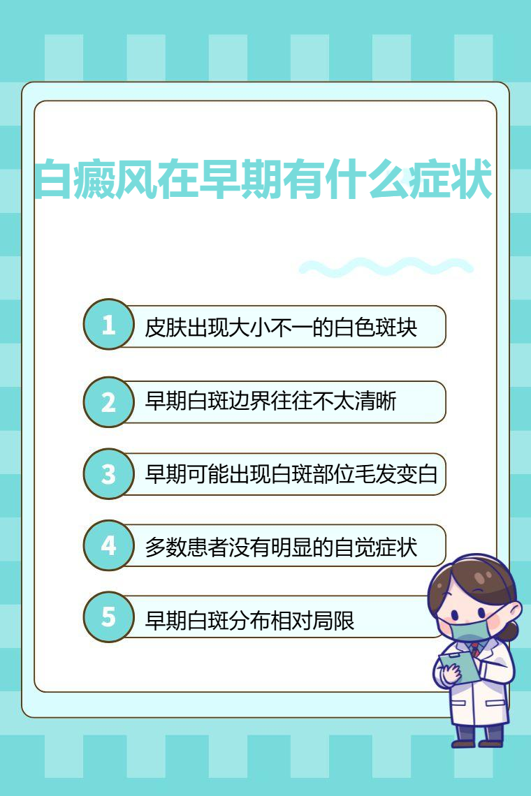 白癜风早期症状有皮肤白斑、边界模糊、毛发变化、无自觉症状、白斑分布等。