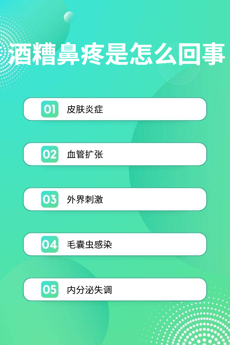 酒糟鼻疼可能是由皮肤炎症、血管扩张、外界刺激、毛囊虫感染、内分泌失调等引起。