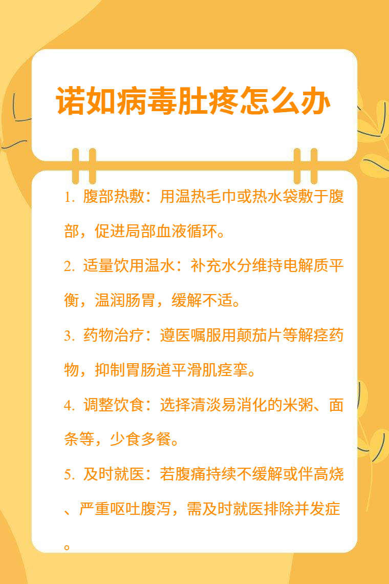 诺如病毒引发肚子疼可通过腹部热敷、适量饮用温水、药物治疗、调整饮食、及时就医等缓解。