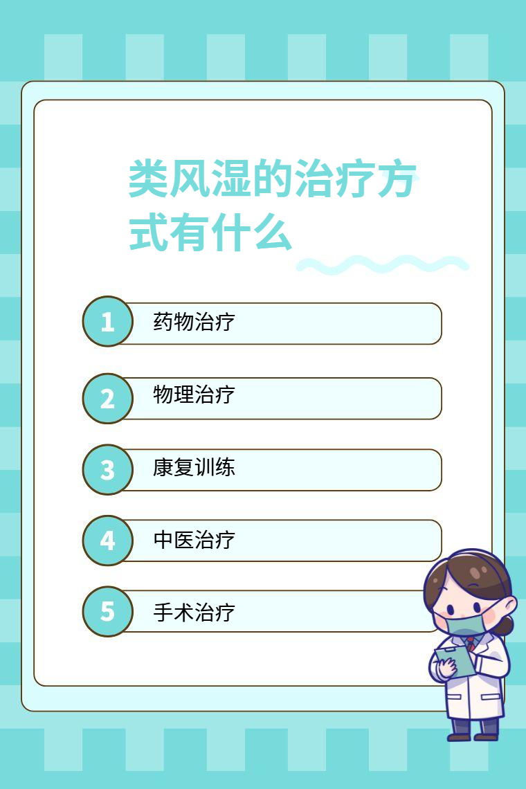 类风湿的治疗方式有药物治疗、物理治疗、康复训练、中医治疗、手术治疗等。