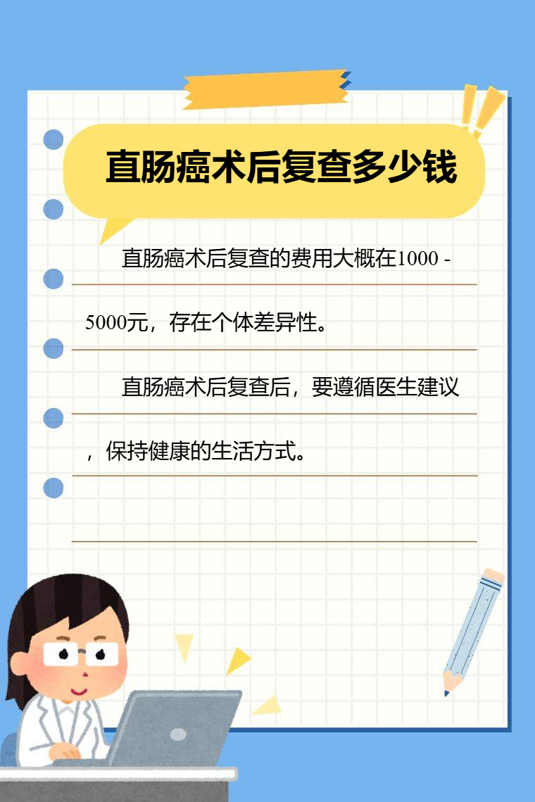 直肠癌术后复查的费用大概在1000 - 5000元,存在个体差异性,主要受检查项目、病情复杂程度、地区差异等影响。