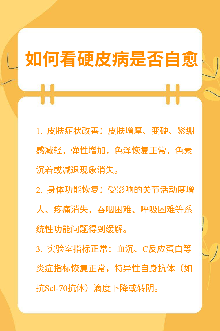 皮肤症状改善、身体功能恢复、实验室指标正常等可用于判断硬皮病是否自愈。
