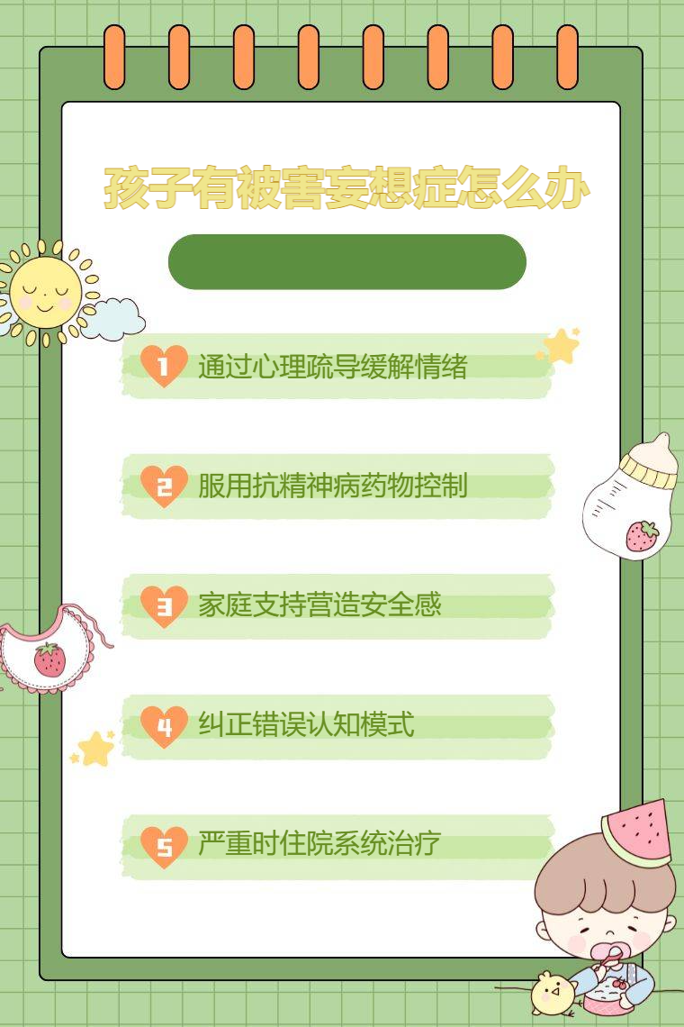 孩子有被害妄想症可通过心理治疗、药物治疗、支持性治疗、认知行为疗法、住院治疗等方法来应对。