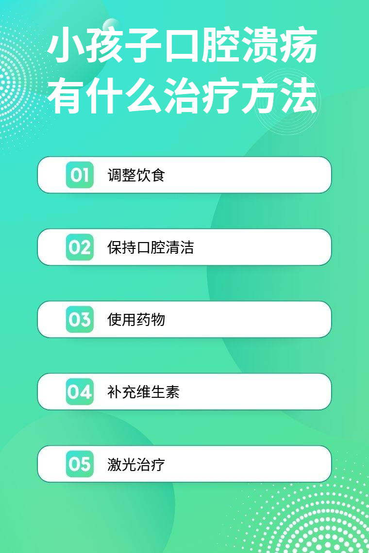 小孩子口腔溃疡可通过调整饮食、保持口腔清洁、使用药物、补充维生素、激光治疗等方法来治疗。
