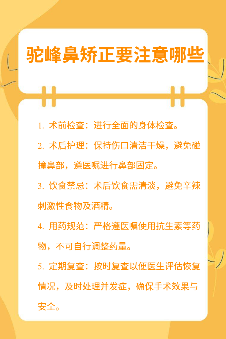 驼峰鼻矫正要注意术前检查、术后护理、饮食禁忌、用药规范、定期复查等。