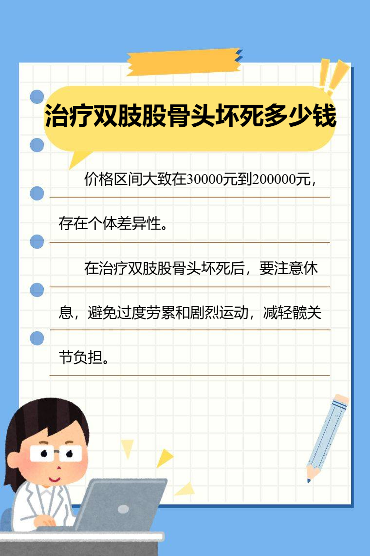 治疗双肢股骨头坏死的费用因多种因素而异,价格区间大致在30000元到200000元,存在个体差异性。影响费用的因素有治疗方式、病情严重程度、所用药物、康复周期等。