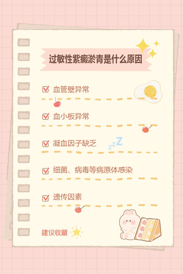 过敏性紫癜淤青常见原因有血管壁异常、血小板异常、凝血因子缺乏、感染、遗传因素等。