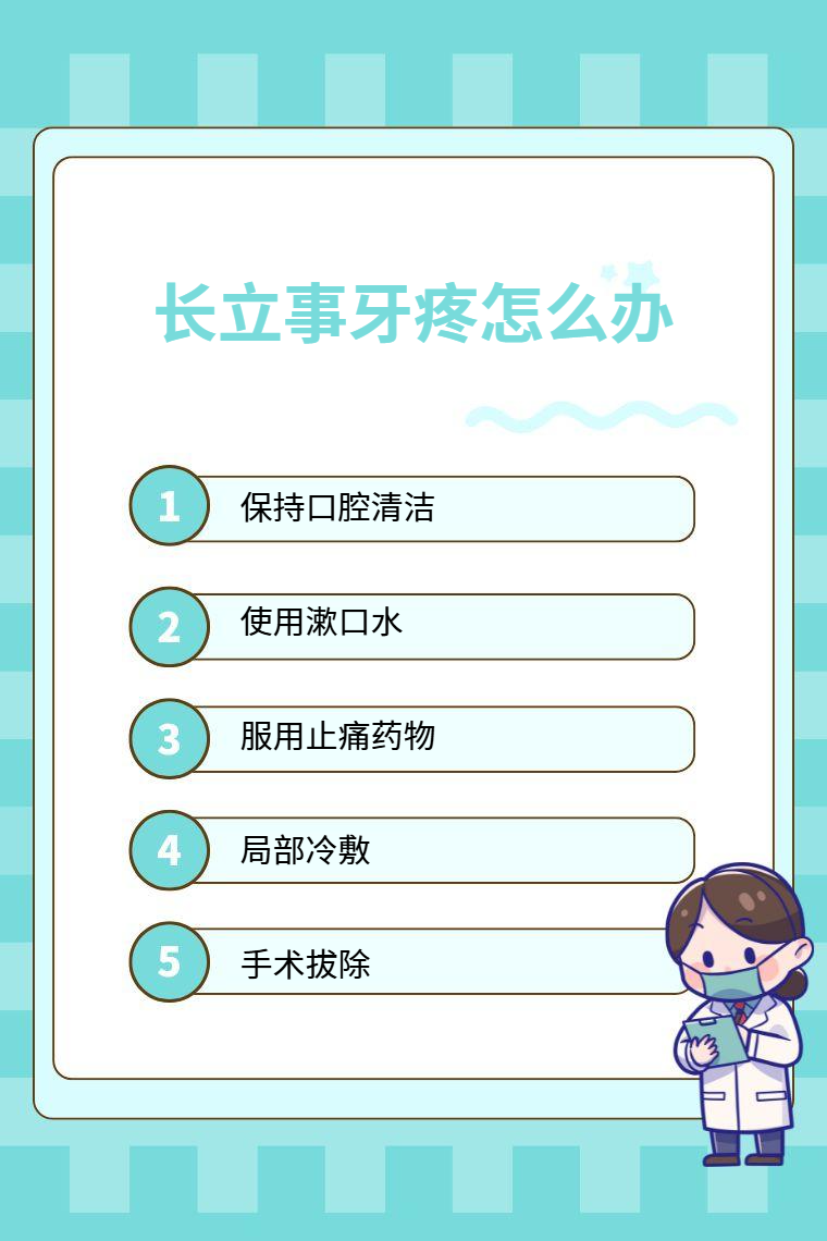 长立事牙疼可以通过保持口腔清洁、使用漱口水、服用止痛药物、局部冷敷、手术拔除等方法来缓解。