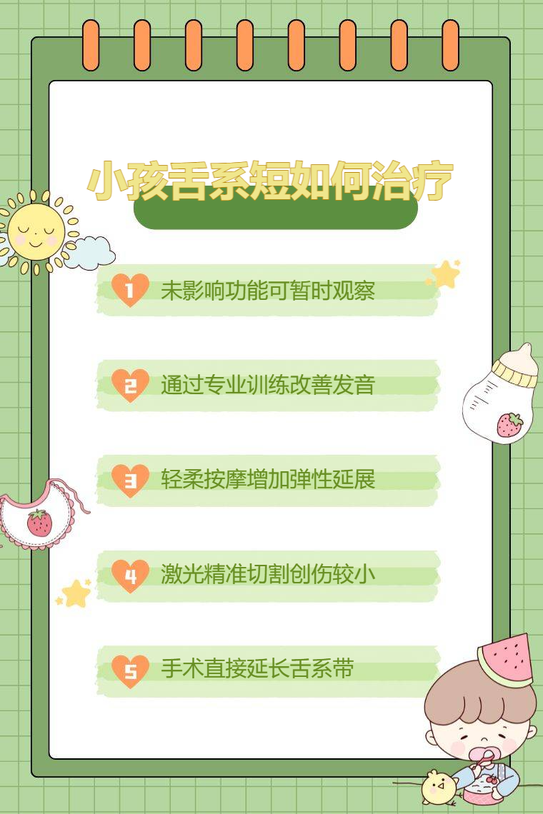 小孩舌系带短的治疗方法有观察等待、语言训练、按摩、激光治疗、手术治疗等。
