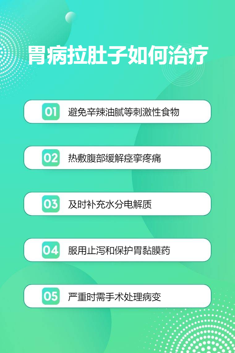 胃病拉肚子可通过调整饮食、腹部保暖、补充水分、药物治疗、手术治疗等方法来应对。