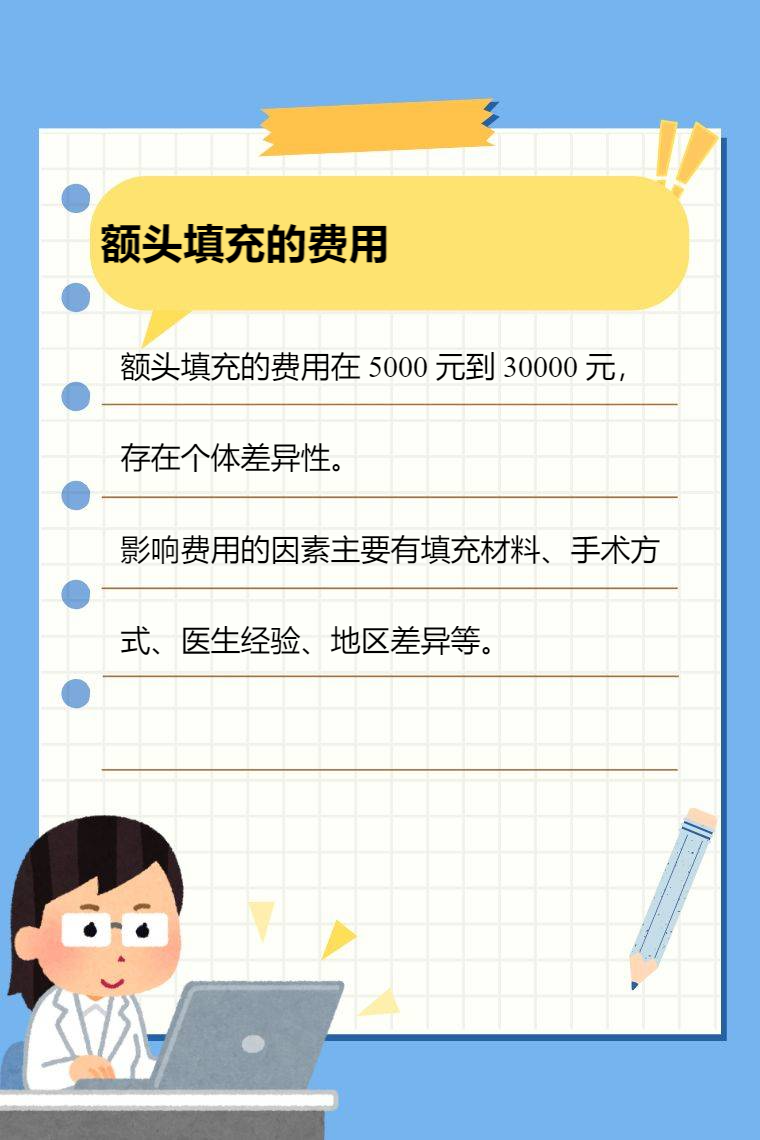 额头填充的费用因多种因素而异,价格区间大致在 5000 元到 30000 元,存在个体差异性。影响费用的因素主要有填充材料、手术方式、医生经验、地区差异等。