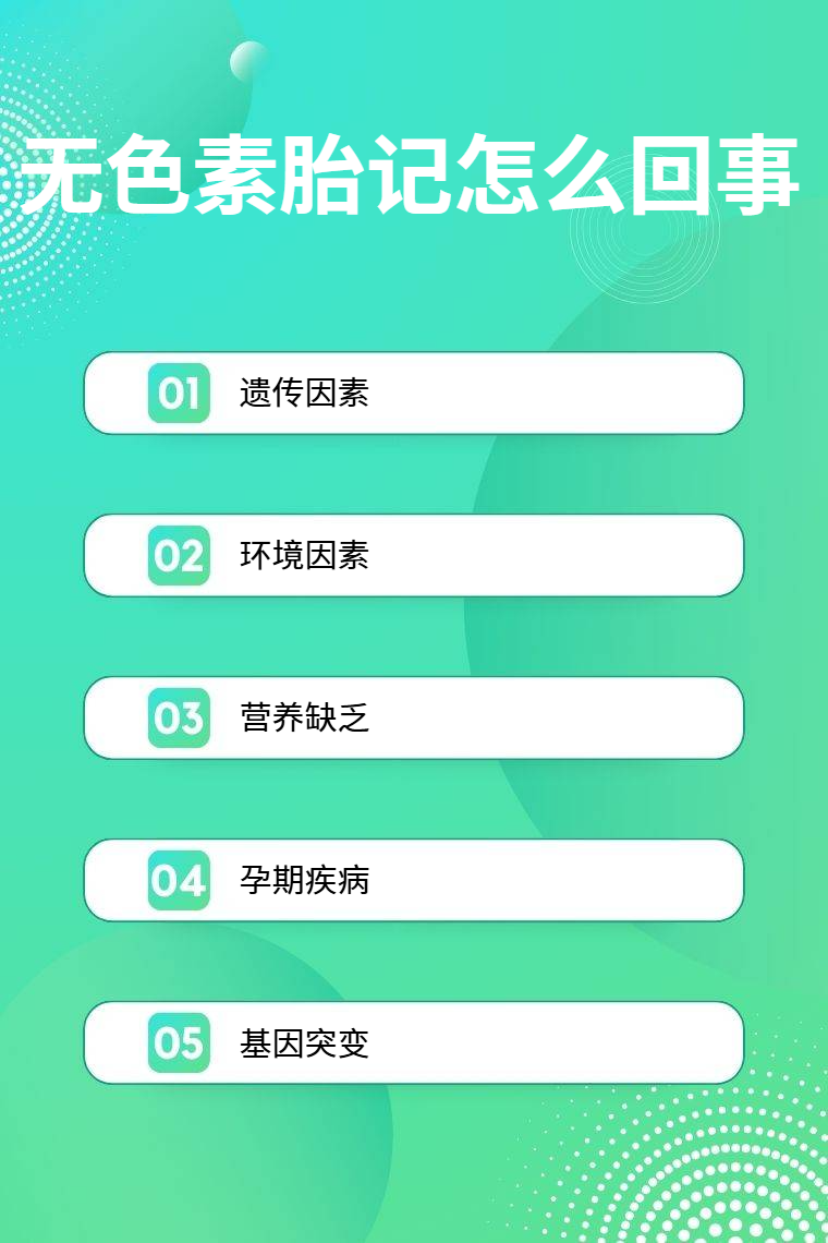 1. 遗传因素:部分无色素胎记的形成与遗传密切相关。家族中若存在患有无色素胎记的个体,其遗传基因可能会传递给后代,增加后代出现无色素胎记的几率。遗传因素在无色素胎记的发病机制中占据较为重要的地位,许多研究都发现家族聚集性的无色素胎记病例。