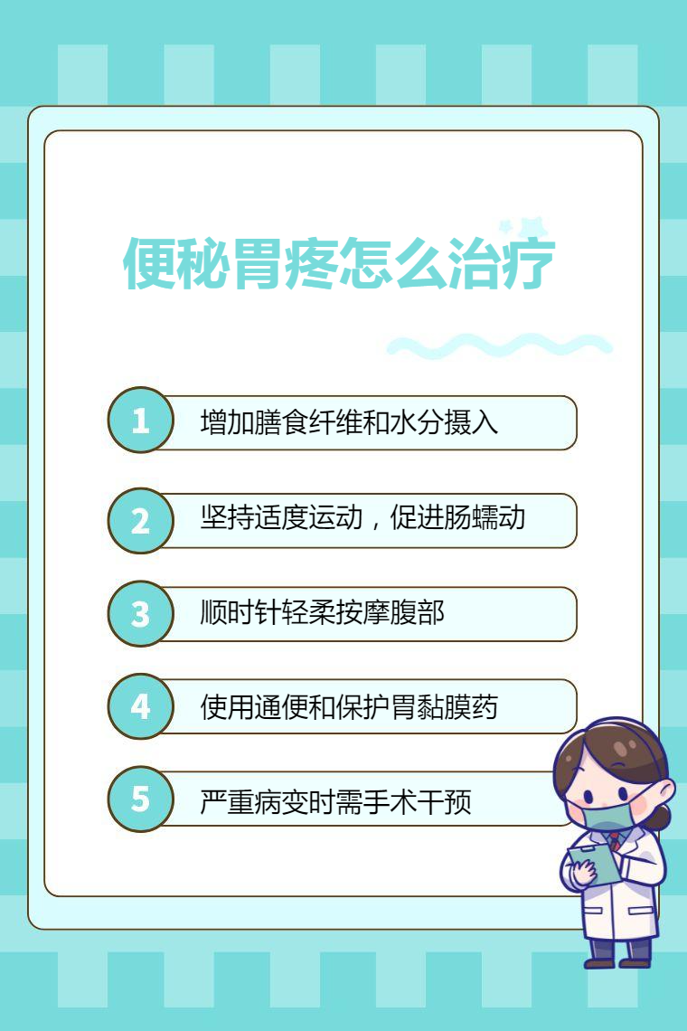 便秘胃疼可通过调整饮食、增加运动、腹部按摩、药物治疗、手术治疗等方法来缓解和治疗。