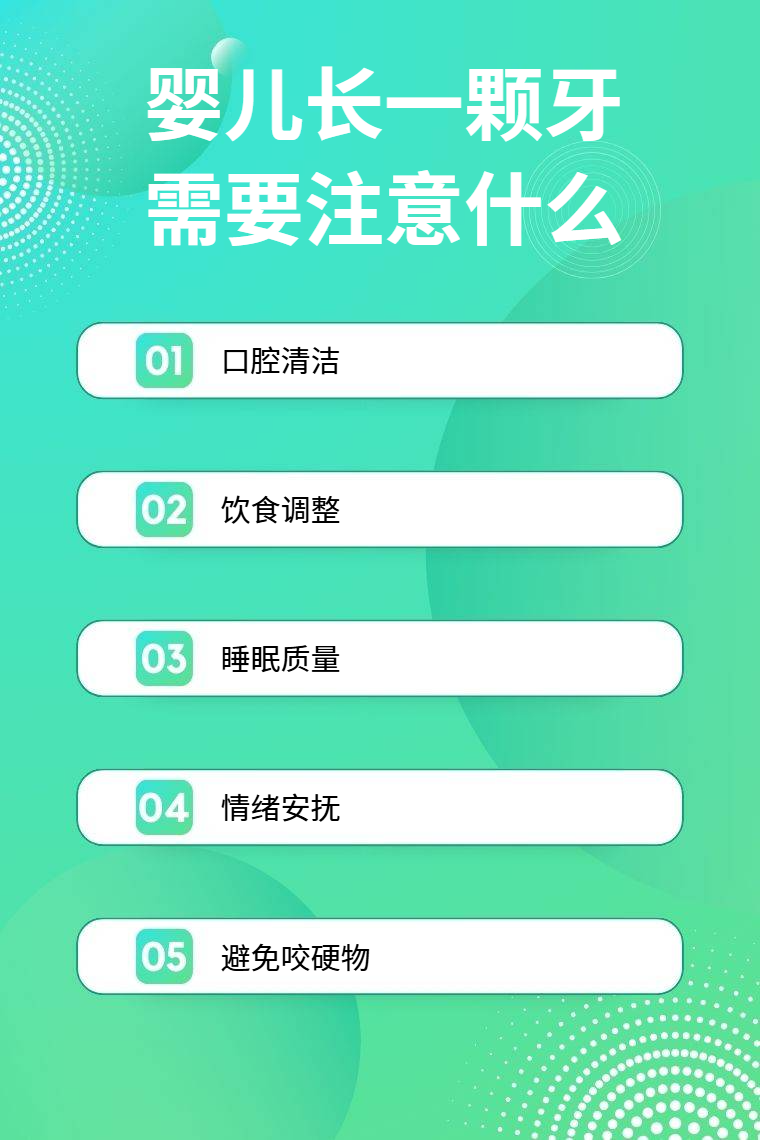 婴儿长一颗牙时需注意口腔清洁、饮食调整、睡眠质量、情绪安抚、避免咬硬物等。