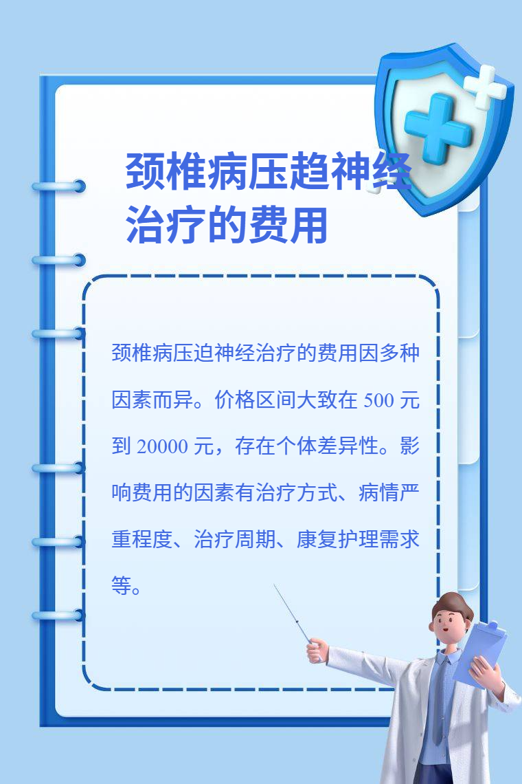 颈椎病压迫神经治疗的费用因多种因素而异。价格区间大致在 500 元到 20000 元,存在个体差异性。影响费用的因素有治疗方式、病情严重程度、治疗周期、康复护理需求等。
