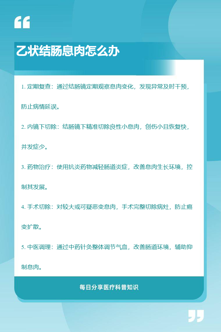乙状结肠息肉可通过定期复查、内镜下切除、药物治疗、手术切除、中医调理等方法处理。