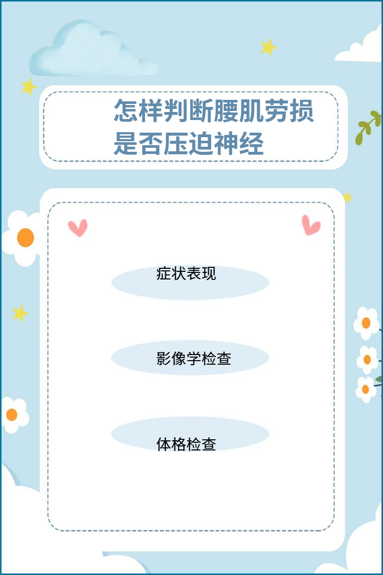 判断腰肌劳损是否压迫神经可从症状表现、影像学检查、体格检查等方面入手。
