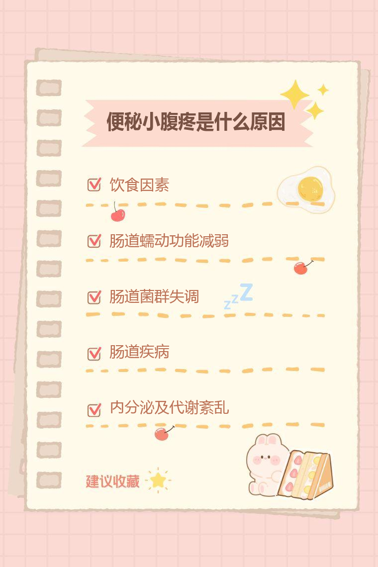便秘小腹疼常见原因有饮食因素、肠道蠕动功能减弱、肠道菌群失调、肠道疾病、内分泌及代谢紊乱等。