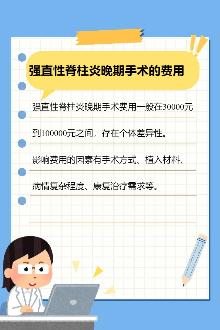强直性脊柱炎晚期手术费用因多种因素而异,一般在 30000 元到 100000 元之间,存在个体差异性。影响费用的因素有手术方式、植入材料、病情复杂程度、康复治疗需求等。