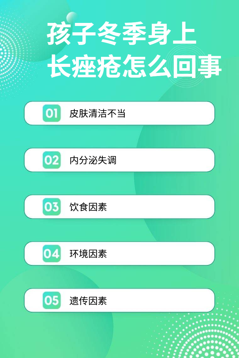 5. 遗传因素:如果家族中有痤疮遗传史,孩子遗传到相关基因的可能性较大,在冬季等特定环境下,受多种因素综合影响,更易出现痤疮问题。