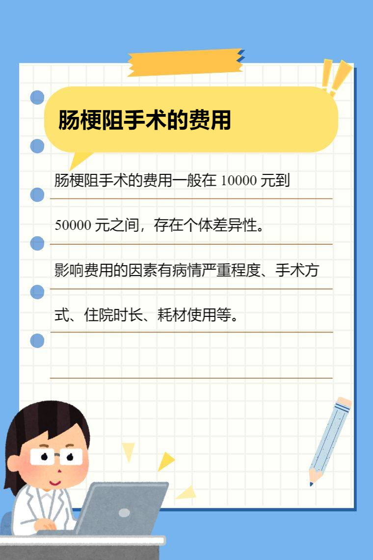 肠梗阻手术的费用因多种因素而异,一般在 10000 元到 50000 元之间,存在个体差异性。影响费用的因素有病情严重程度、手术方式、住院时长、耗材使用等。