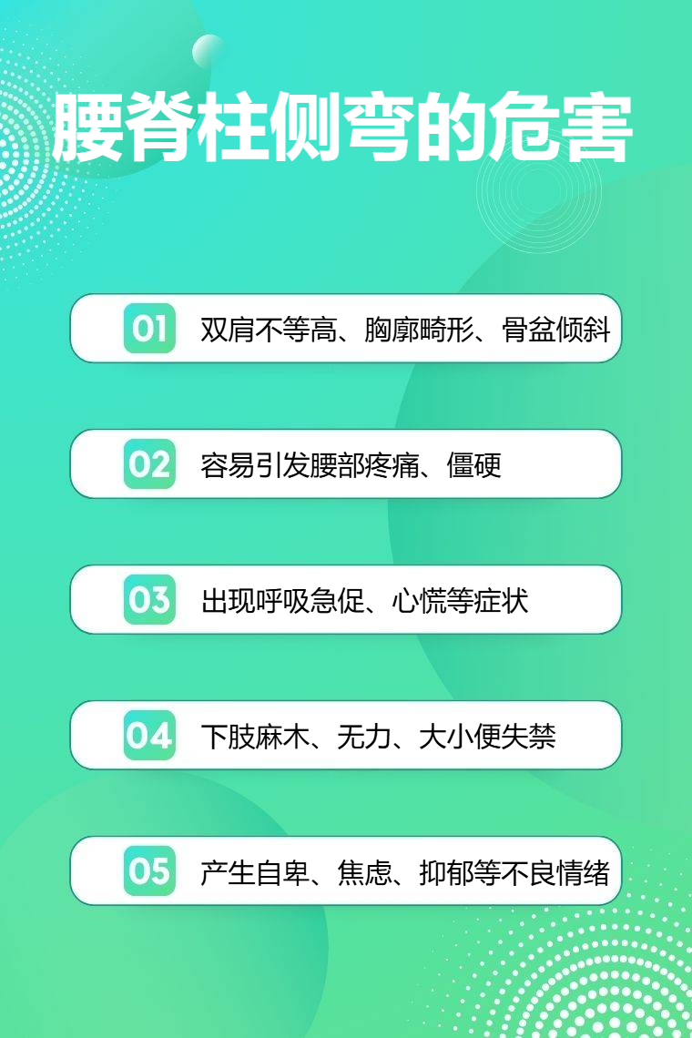 腰脊柱侧弯的危害包括外观变形、疼痛不适、心肺功能影响、神经损伤、心理问题等。