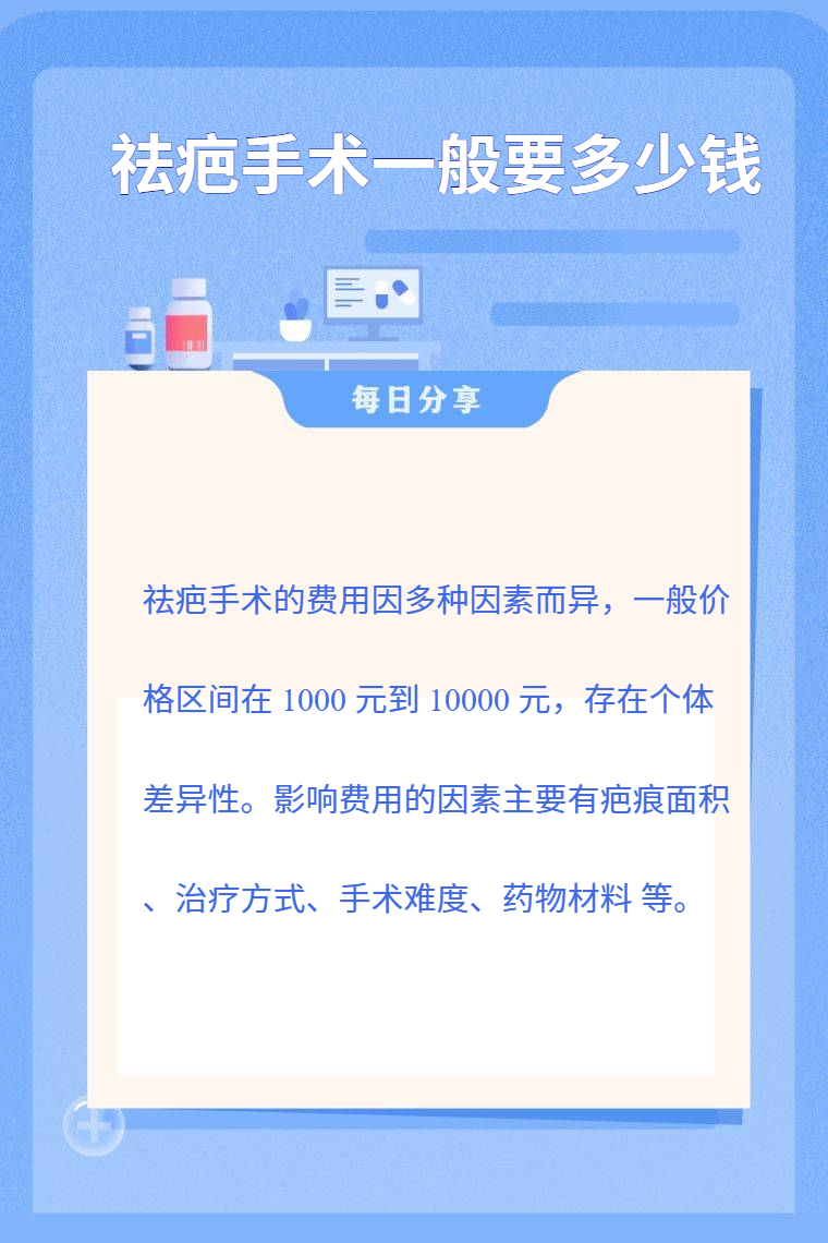 祛疤手术的费用因多种因素而异,一般价格区间在 1000 元到 10000 元,存在个体差异性。影响费用的因素主要有疤痕面积、治疗方式、手术难度、药物材料 等。
