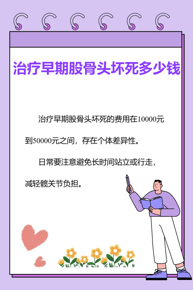 治疗早期股骨头坏死的费用在10000元到50000元之间,存在个体差异性。影响费用的因素有病情严重程度、治疗方式、药物使用、康复护理 等。