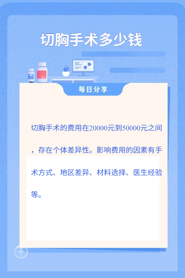 切胸手术的费用在20000元到50000元之间,存在个体差异性。影响费用的因素有手术方式、地区差异、材料选择、医生经验等。
