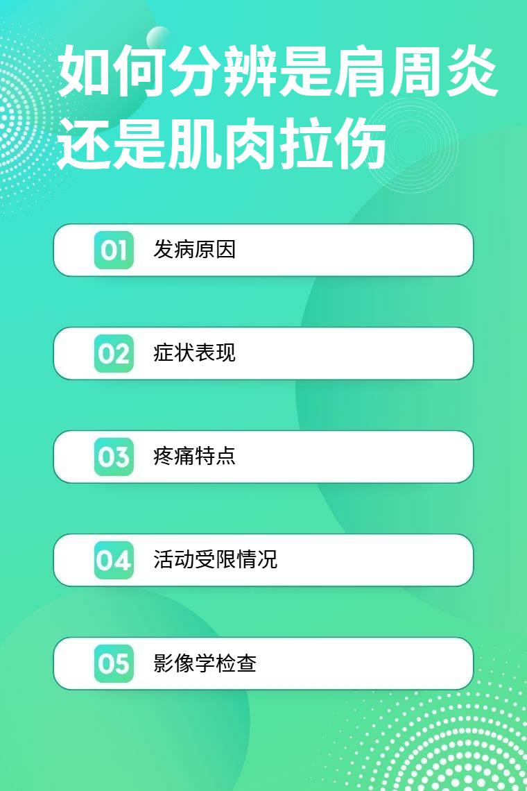 分辨肩周炎与肌肉拉伤可从发病原因、症状表现、疼痛特点、活动受限情况、影像学检查等方面入手。